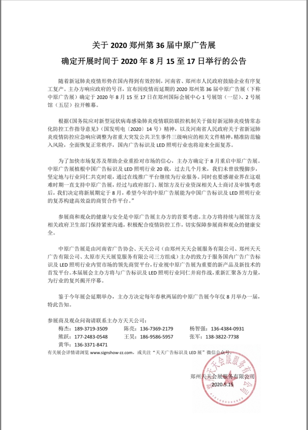 關于2020鄭州第36屆中原廣告展開展時間確定的通知